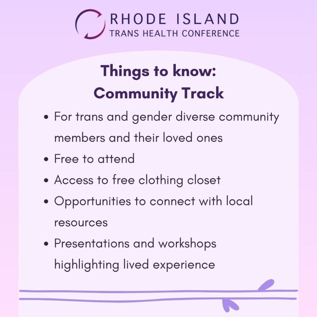 When the RI Trans Health Conference first began, it was run primarily by providers, for providers. Over the years, it became increasingly clear that programming could and should be offered for medical/behavioral health providers as well as for community members. Thus came the Community Track.